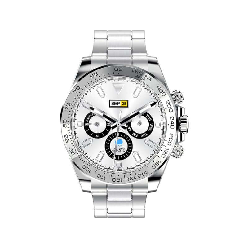 Denna sportiga och eleganta digitala smartklocka är den perfekta följeslagaren för den moderna personen som vill ha både hög prestanda och stil. Oavsett om du är på ett affärsmöte eller på väg till gymmet ger denna smartklocka dig allt du behöver. Dess vattentäta design håller dig i toppform i alla väderförhållanden, medan avancerade funktioner som samtalshantering, sportlägen och pulsmätning säkerställer att du alltid är uppkopplad och har kontroll. Anpassningsbara urtavlor gör att du kan matcha klockan till din stil eller klädsel, vilket gör den lika mångsidig som den är snygg.