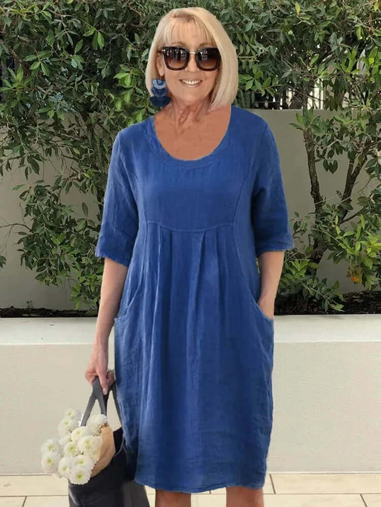 Sommarklänning i bomull och linne med fickor
