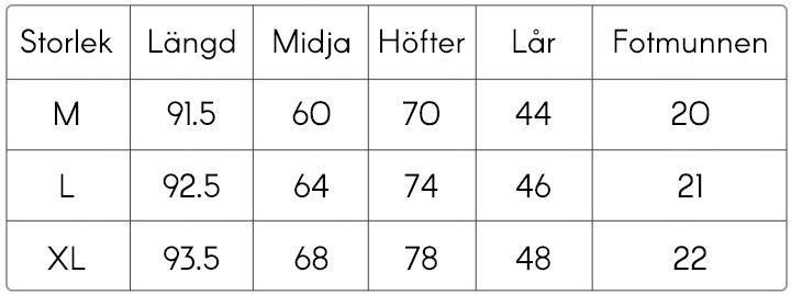 Dessa mått är ungefärliga och kan variera något beroende på elasticitet och passform.