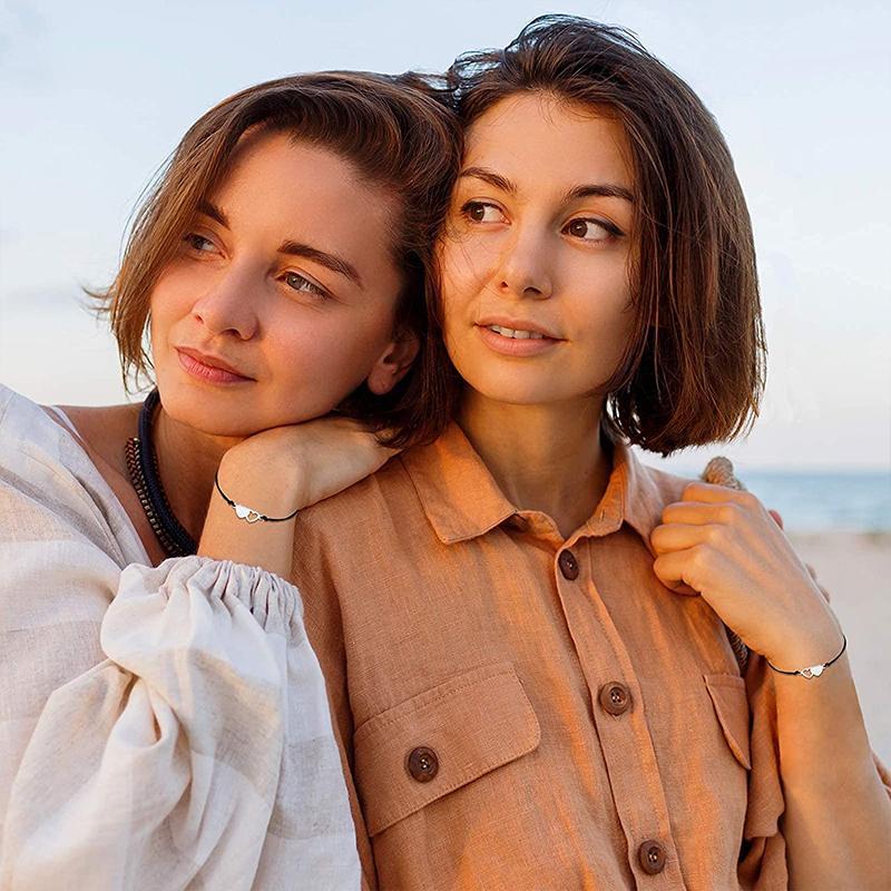 Upptäck det vackra vänskap kärleksarmbandet som symboliserar evig vänskap och kärlek. Detta hjärtformade armband är perfekt för att fira de speciella banden med dina närmaste. Tillverkad av slitstarkt rostfritt stål och nylonrep, är det en idealisk present för systrar, bästa vänner och älskade kvinnor.