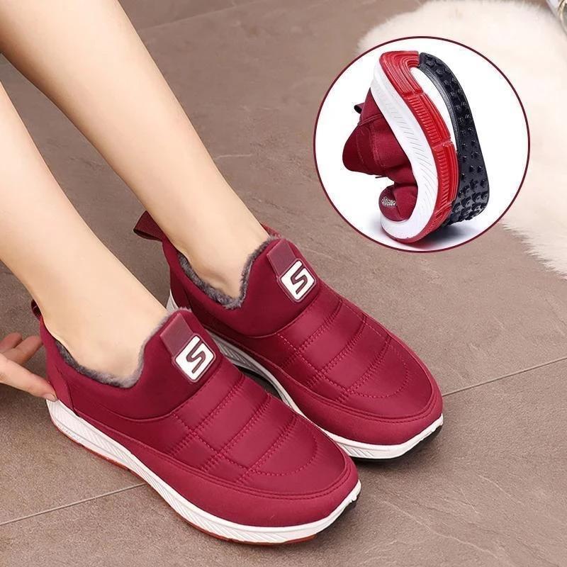 "Vattentäta dam snökängor, tjock plyschfoder, PVC-halksula, snygg design, perfekt för vinterpromenader."