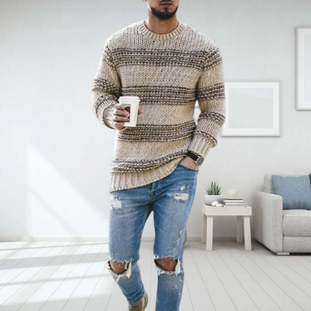 Stilren stickad cardigan med dragkedja för herrar