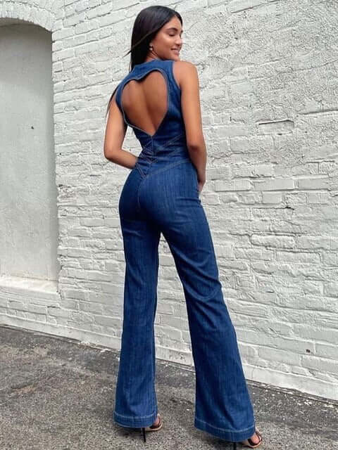Figurnära denim jumpsuit för kvinnor - Nemy