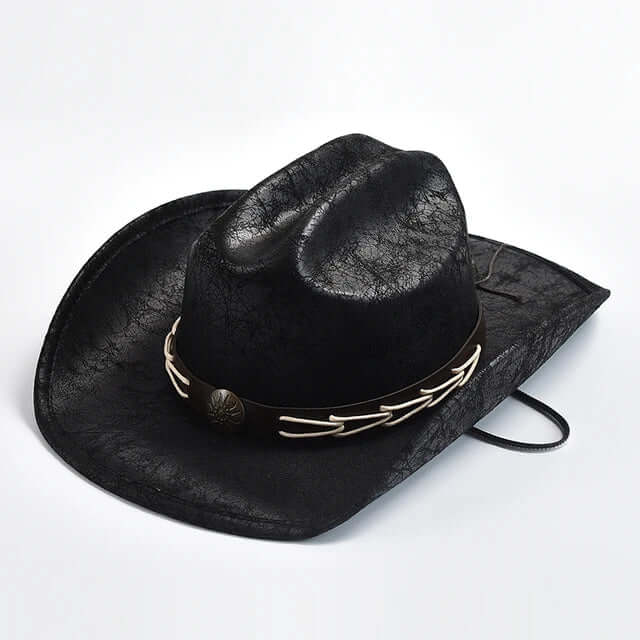 Cowboyhatt i läder med benpärlor – Westernstil