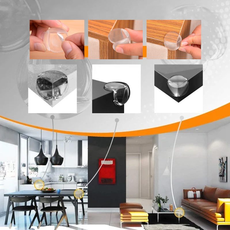 "Transparenta barnsäkerhetsskydd av silikon för bordshörn, mjuka och robusta, perfekta för skarpa kanter i hemmet."