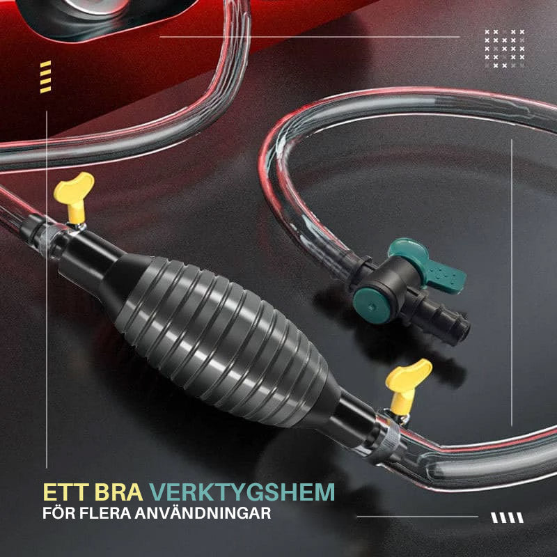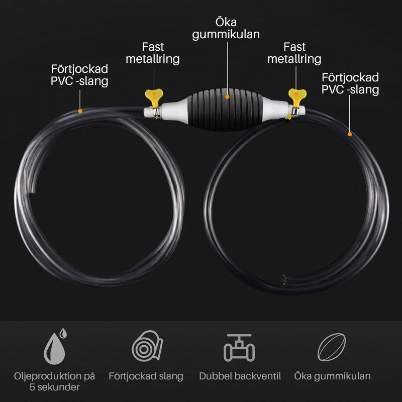 "Bärbar bilbränslepump med slitstark PVC, 1.5 m slang. Idealisk för enkel vätsketransfer av bensin, olja, vatten."