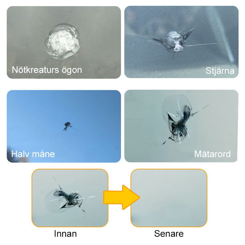 Gör dig redo att säga adjö till irriterande stenskott på bilglaset! Vårt högkvalitativa reparationssats är designat för att återställa din bilruta till sitt ursprungliga utseende och skydda mot framtida skador.