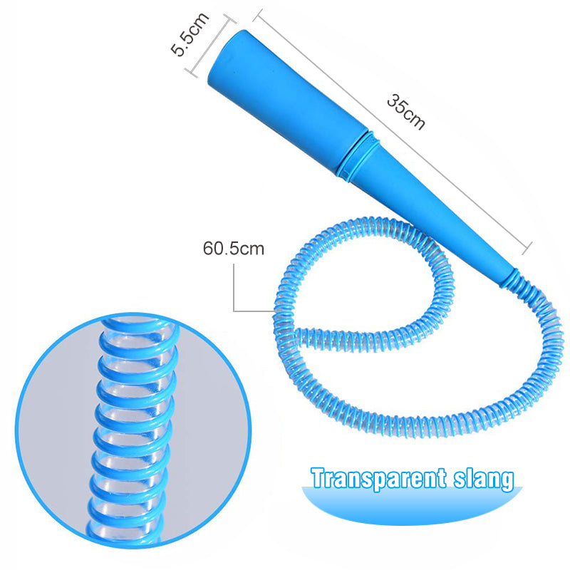 "Blått dammsugarmunstycke med flexibel 1-meters slang och suginställningar för rengöring av trånga och svåråtkomliga utrymmen