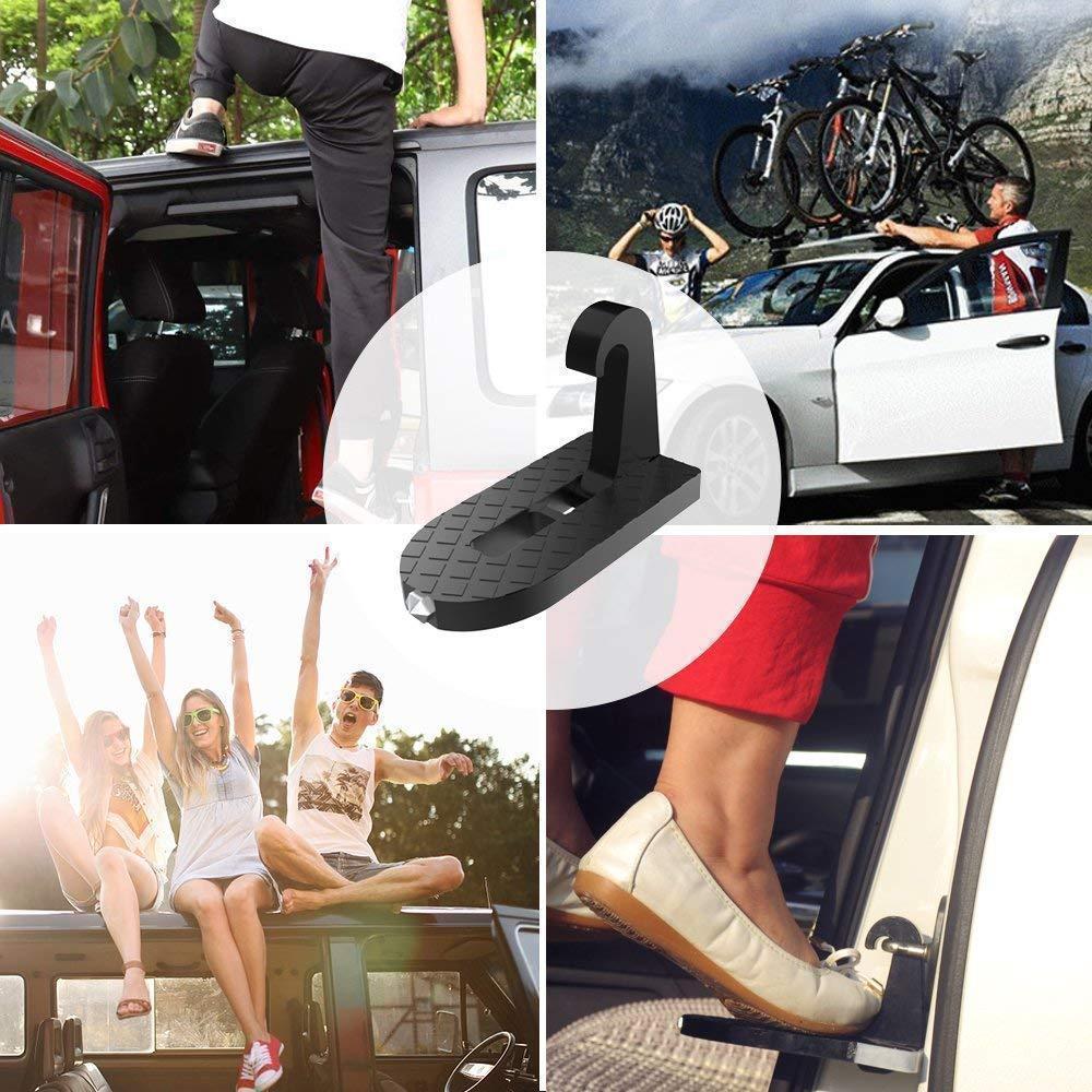Gör din bilresa enklare och säkrare med detta multifunktionella fotsteg. Placera enkelt alla dina skrymmande föremål på biltaket utan krångel. Den halkfri designen ger dig ett pålitligt och säkert stöd vid dörren, vilket gör det till det perfekta tillbehöret för SUV, RV, Jeep eller off-road fordon. Kombinera det med en nödhammare och du har ett oumbärligt verktyg för både vardagsresor och nödsituationer.