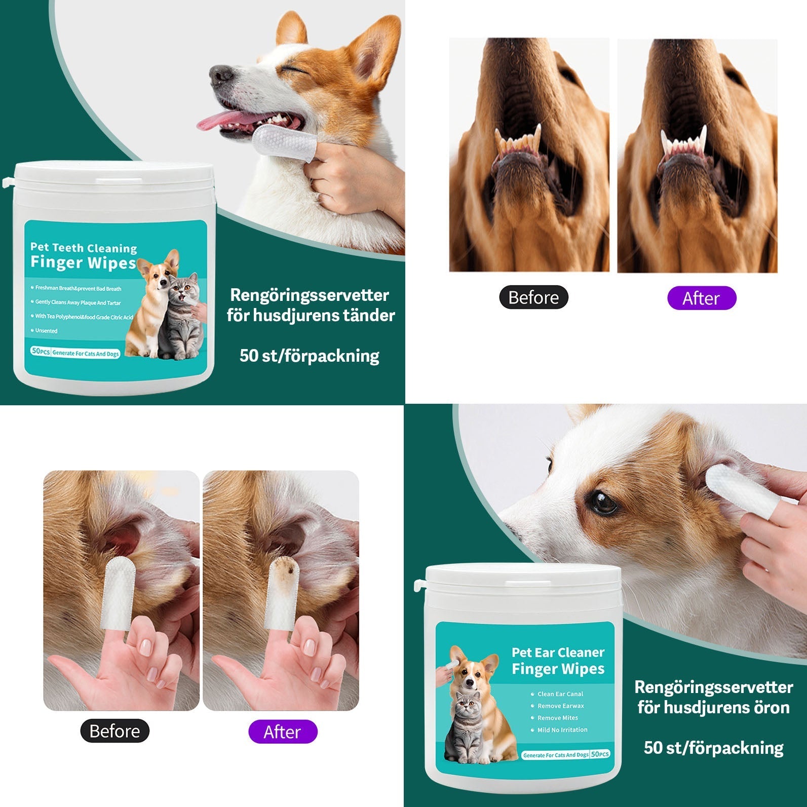 Rengöringsservetter för tänder och öron på husdjur (50 stuks)