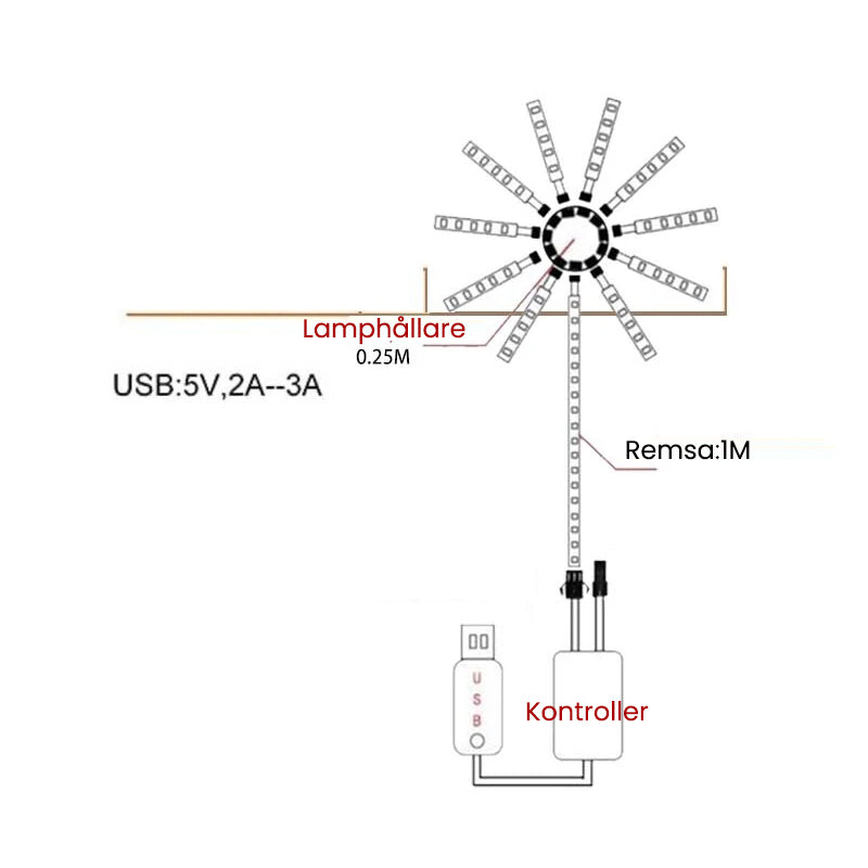 • Universell USB-strömförsörjning: Anslut till dator, powerbank eller telefonladdare.