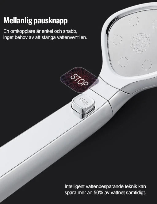• Kraftfull trycksättning: Justera vattentrycket med 4 olika växlar för en skräddarsydd duschupplevelse.