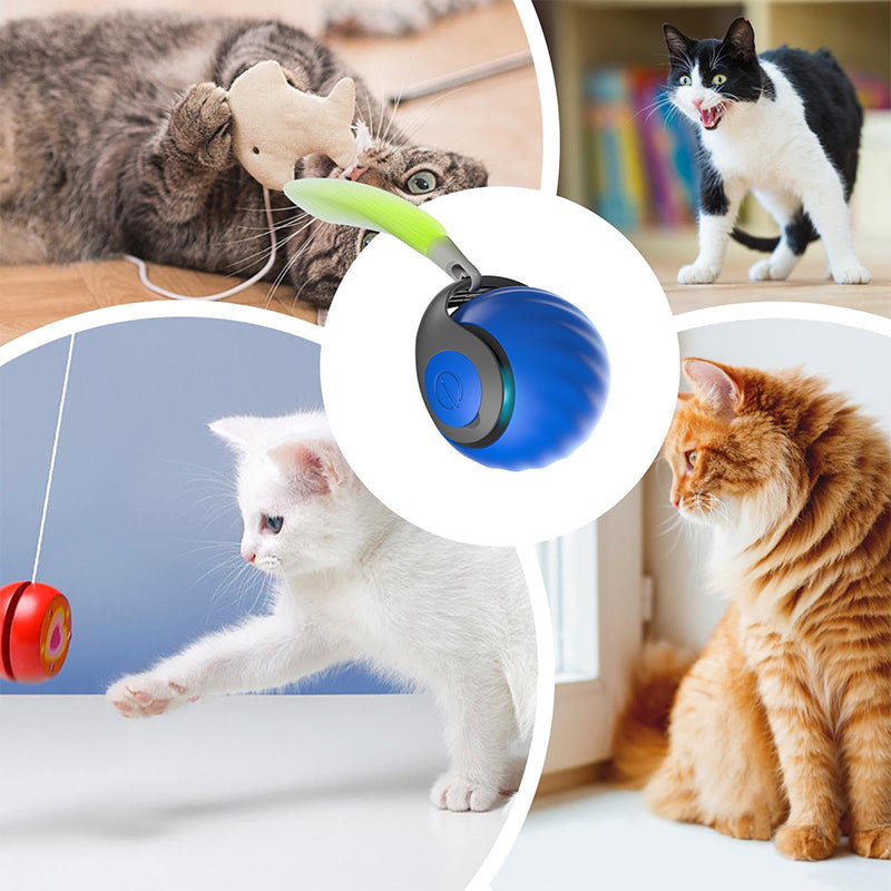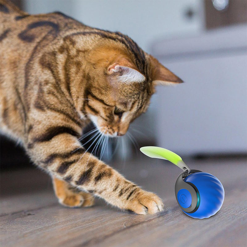Interaktiv leksak för husdjur med rörelsedetektion, justerbara hastigheter, färgglad med rund form på träyta.