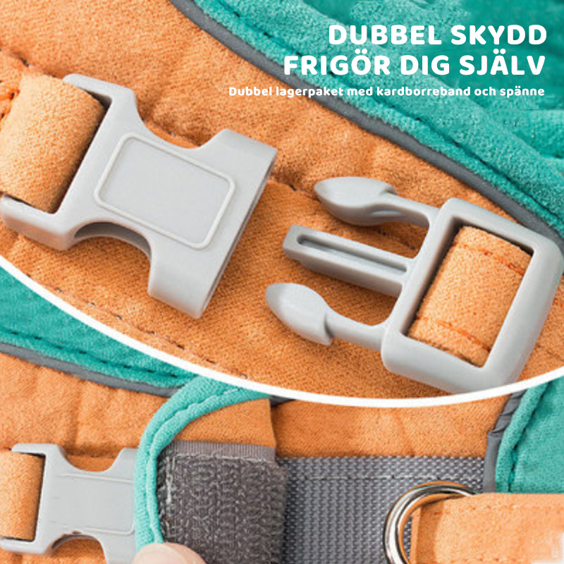 Denna sele är utrustad med säkerhetsfunktioner för att förhindra att ditt husdjur flyr, vilket gör den till det perfekta valet för promenader, jogging och äventyr i parken.