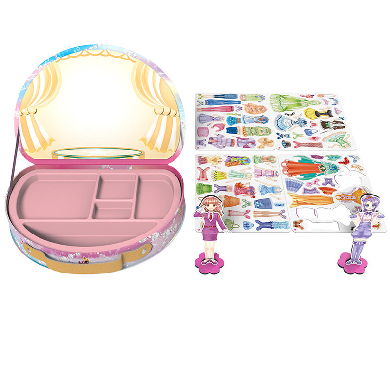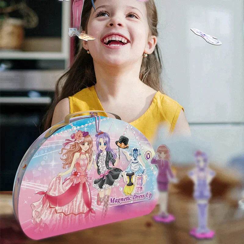 "Magnetisk klä upp-docka för barn, lättburen järnlåda, färgglada kläder och tillbehör, lekvänlig från 3 år."