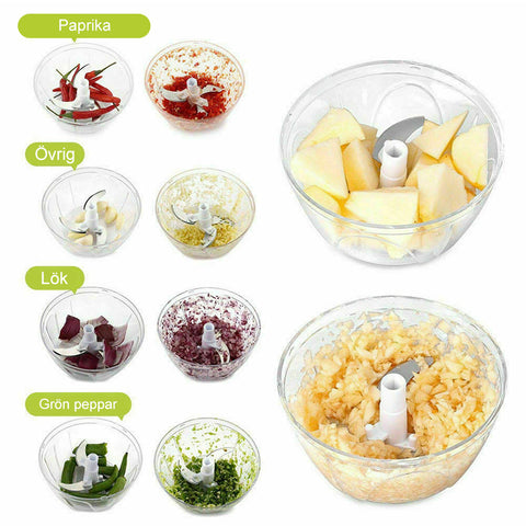• Enkel användning - Inget behov av elektricitet, lägg bara i ingredienserna, stäng locket och dra i sladden för att hacka.