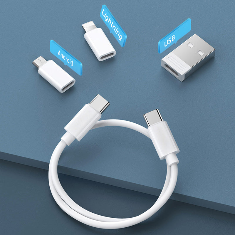 • Multifunktionell: Utrustad med utbytbara kablar och fyra olika portar inklusive Android, lightning, USB och TYPE C för enkel dataöverföring och laddning.