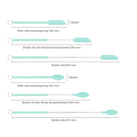 Den teleskopiska designen ger enkel hantering och praktisk förvaring, vilket gör den till en idealisk kompanjon i ditt kök. Upplev bekvämligheten av smart köksredskap med vår mini silikon teleskopspatel!