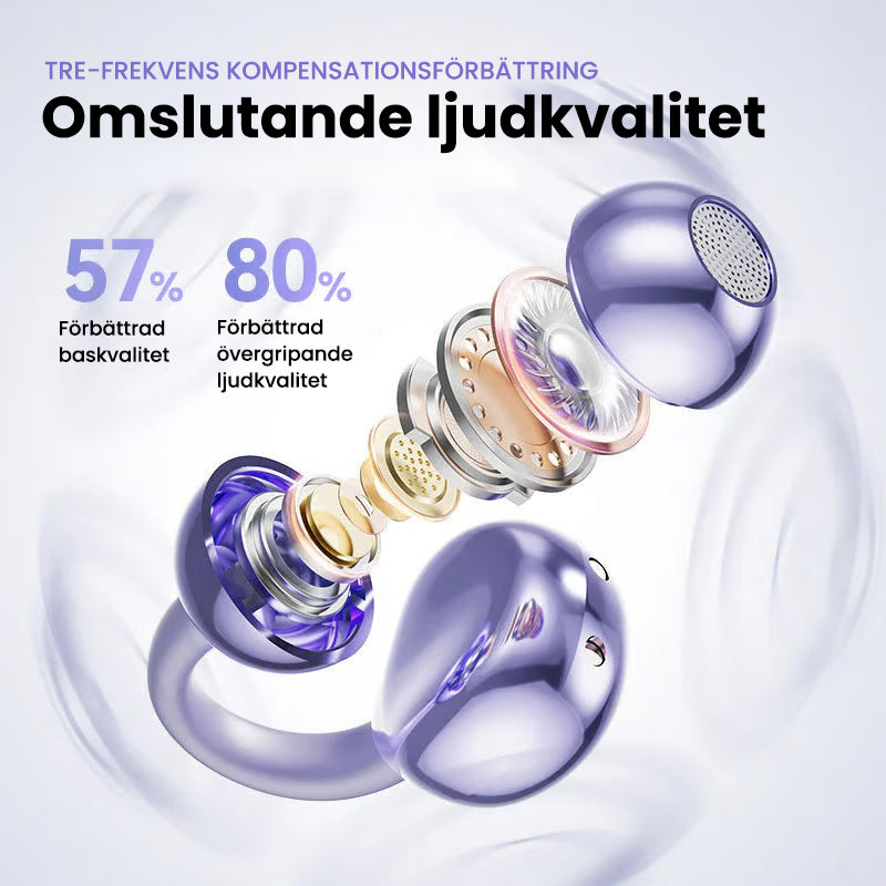 • Öppen örondesign: Njut av musik samtidigt som du är medveten om omgivningen för säker lyssning.