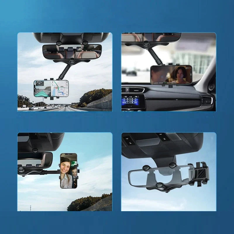 Upptäck enkelheten med vår multifunktionella backspegel mobilhållare, designad för att ge dig en problemfri körupplevelse. Med sin 360-graders rotationskapabilitet kan du snabbt och säkert justera din mobiltelefon till den optimala vinkeln när du navigerar eller tar del av din favoritmusik. Lämplig för alla bilmodeller, denna hållare säkerställer att din syn inte hindras, samtidigt som den håller din enhet stadigt på plats.