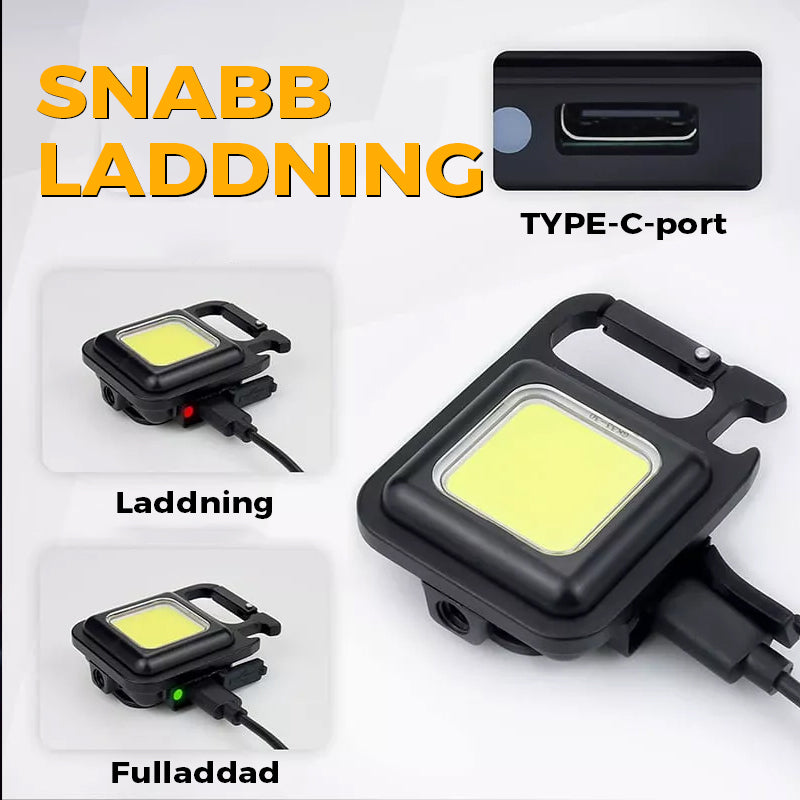 • Mångsidigt: Använd som nyckelring, för arbets- eller nödbelysning, och som flasköppnare.