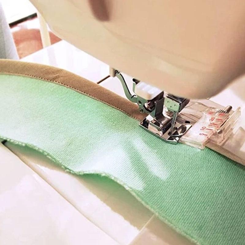 • Justerbar Inställningsskruv: Med en nålinställning mot vänster sida, justera bredden på tygremsan mellan 5 mm till 20 mm.