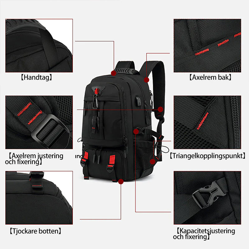 Utforska utan begränsningar med vår stor kapacitet reseryggsäck, perfekt för både män och kvinnor som söker en slitstark och funktionell följeslagare. Vattentät och stöldskyddad design gör den idealisk för äventyrare och dagliga pendlar.