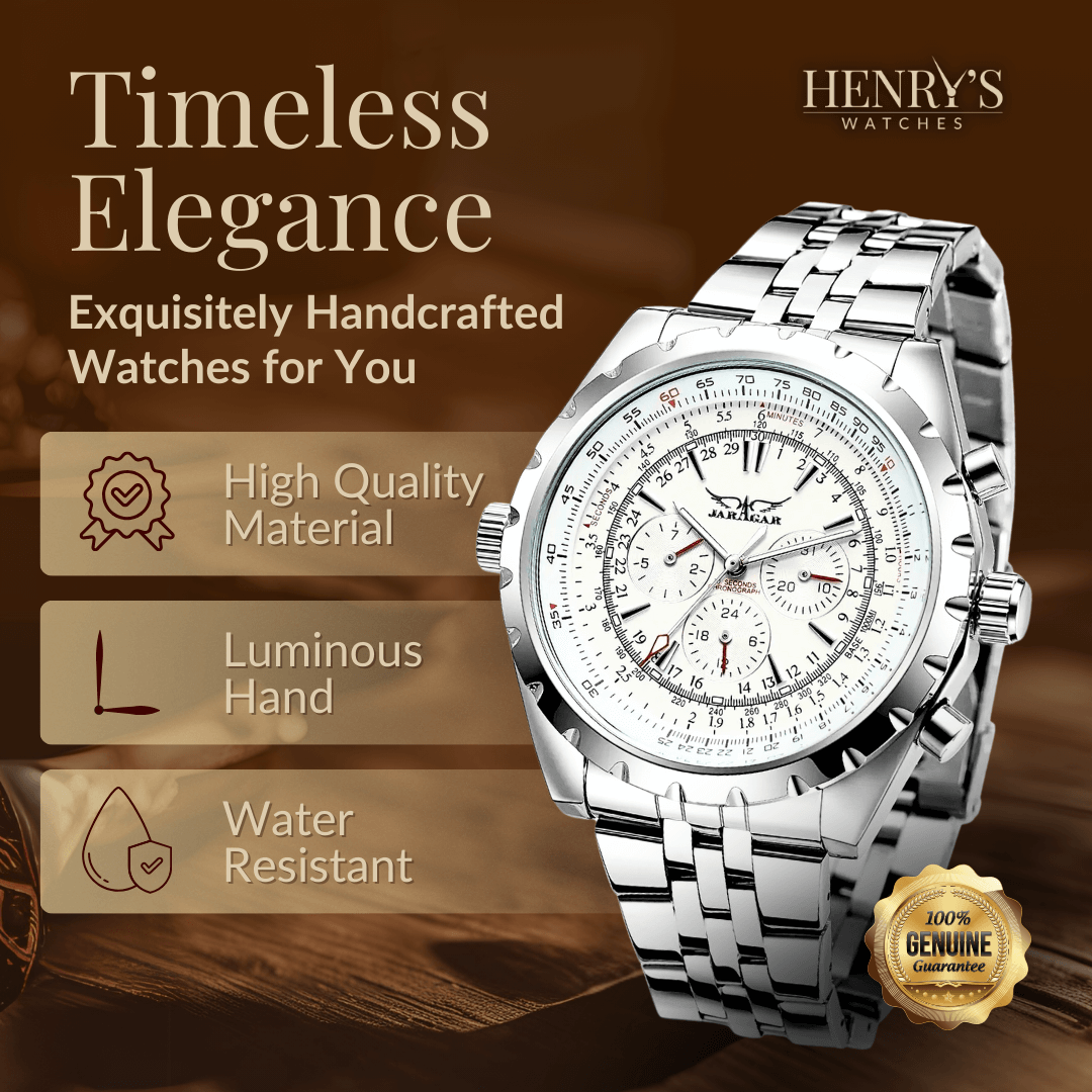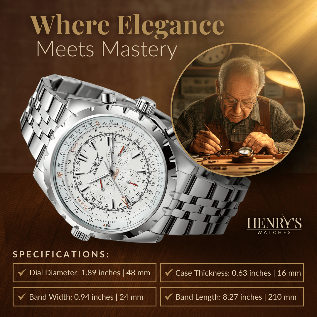 Denna robusta mekaniska klocka erbjuder perfekt balans mellan stil och funktionalitet. Med roterande bezel, självlysande visare och automatiskt urverk är den idealisk för dig som kräver noggrannhet och tillförlitlighet. Oavsett om du är på äventyr eller deltar i ett formellt evenemang, garanterar läder- och stålremmen både komfort och klass.