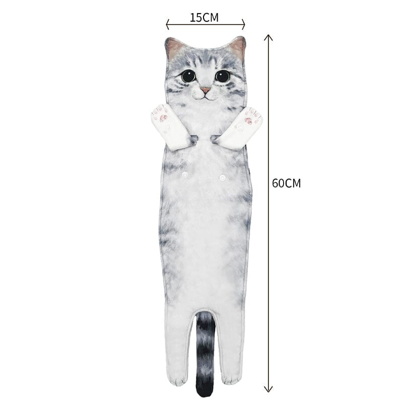 "Handduk med sött och realistiskt kattansikte, perfekt för kattälskare och inredning av kök eller badrum."