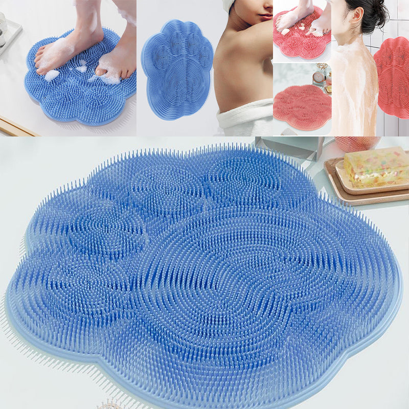 "Silikonmatta med sugkoppar och mjuka borstar för fotvård. Stabil och exfolierande, perfekt för spa-liknande hemupplevelse."