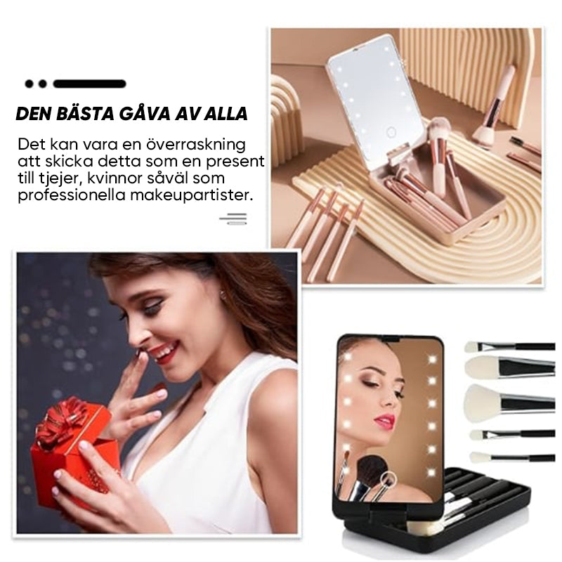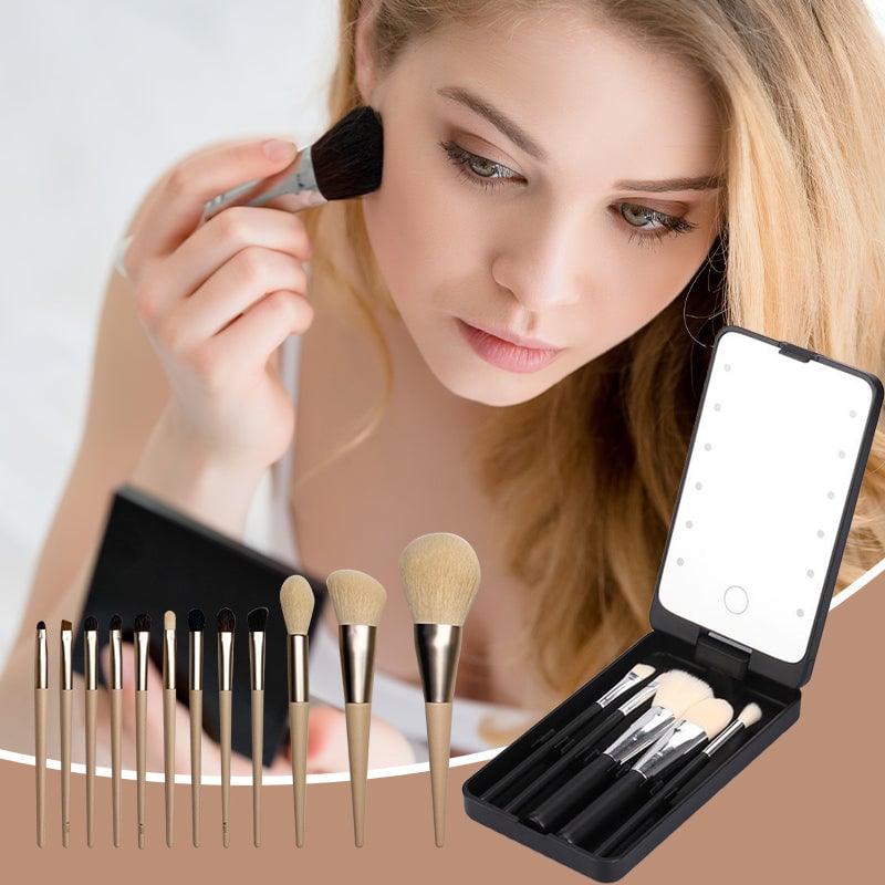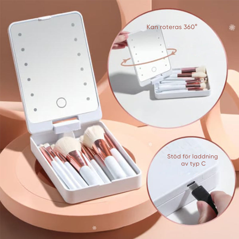 Sminkborstar för Resor med LED-spegel – Tillbehör