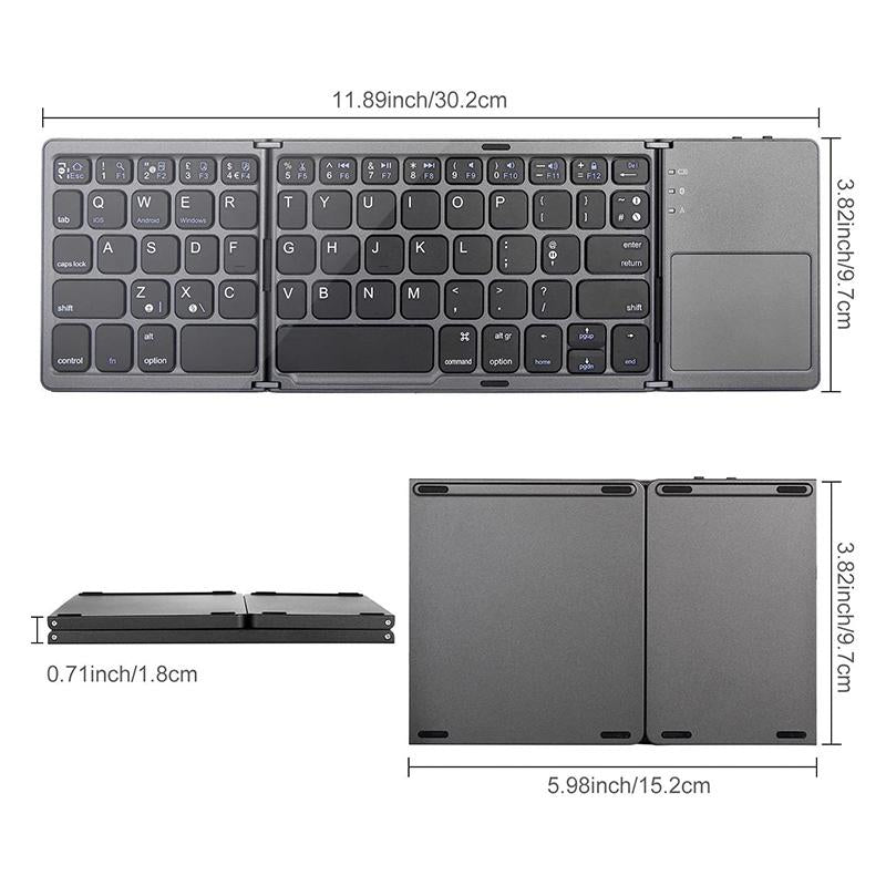 Trådlöst Bluetooth-hopfällbart tangentbord med pekplatta