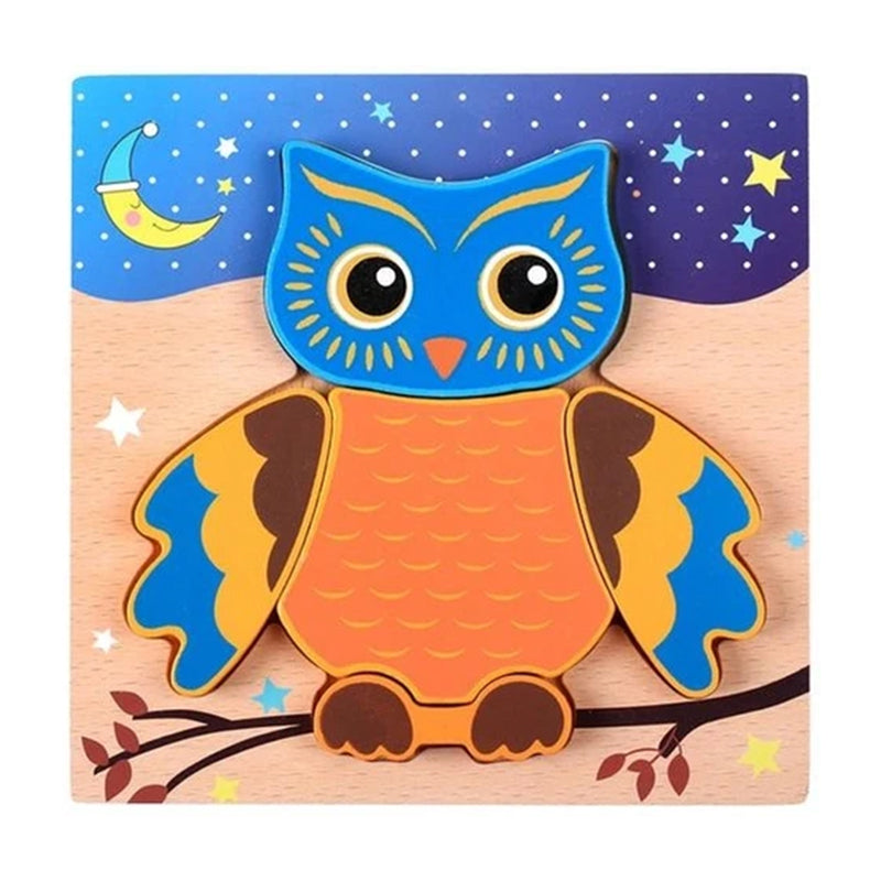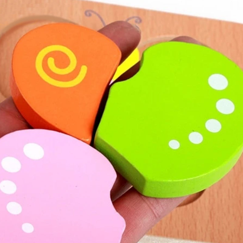 "Färgglatt träpussel för barn med djurmotiv, främjar sensorisk utveckling och inlärning, miljövänligt trä, 15x15 cm."