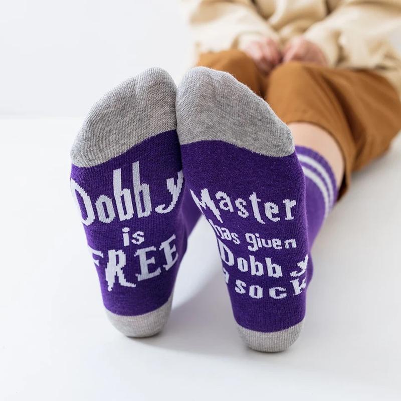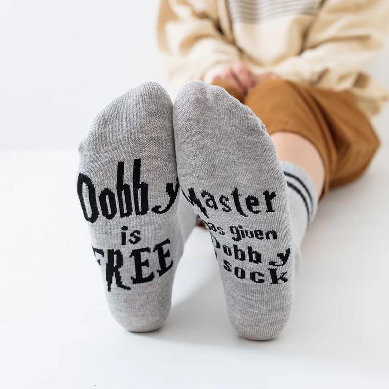 "Unisex bomullsstrumpor med stickade bokstäver, mjuka och bekväma, passar alla säsonger och åldrar."