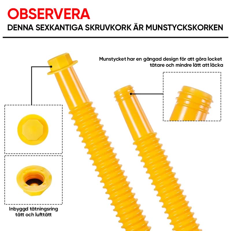 • Spillskydd: Inkluderar gängade piprör och gummitätning för säker tankning.