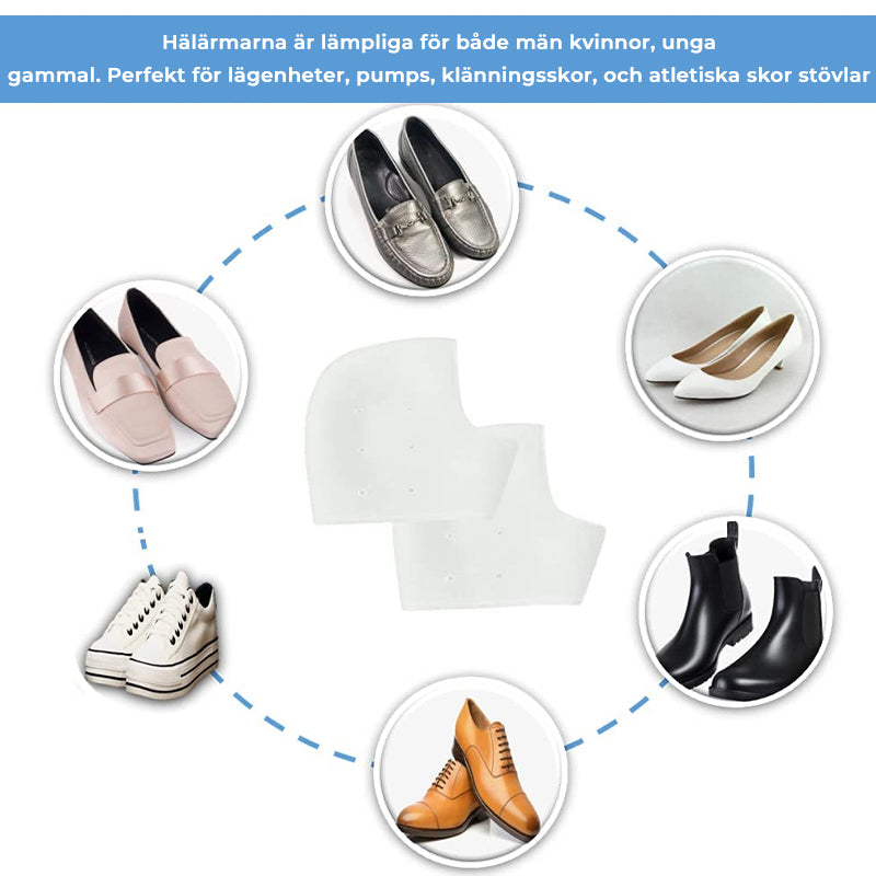 Oavsett om du vilar hemma eller rör dig runt i huset, är vårt hälstöd i silikon designat för att ge dig friska och mjuka fötter. Upptäck den kombination av komfort och funktionalitet som våra hälstöd erbjuder, tack vare den ergonomiskt utformade passformen och de unika materialvalen.