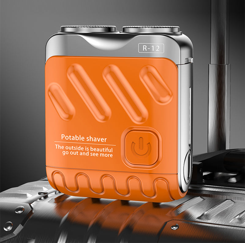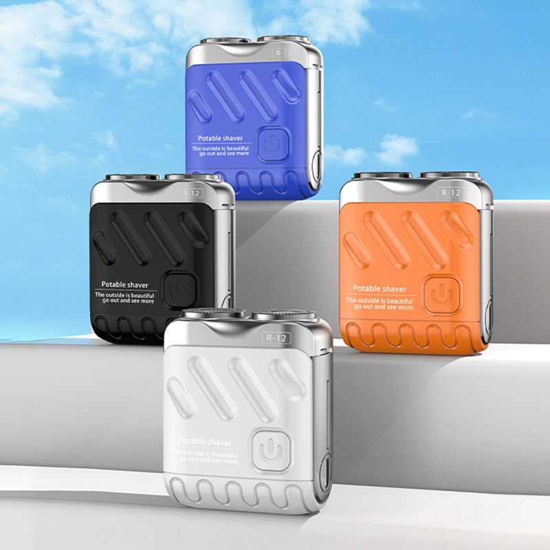 "Portabel elektrisk minirakapparat, kompakt design, för män och kvinnor, blå, orange, svart och vit."