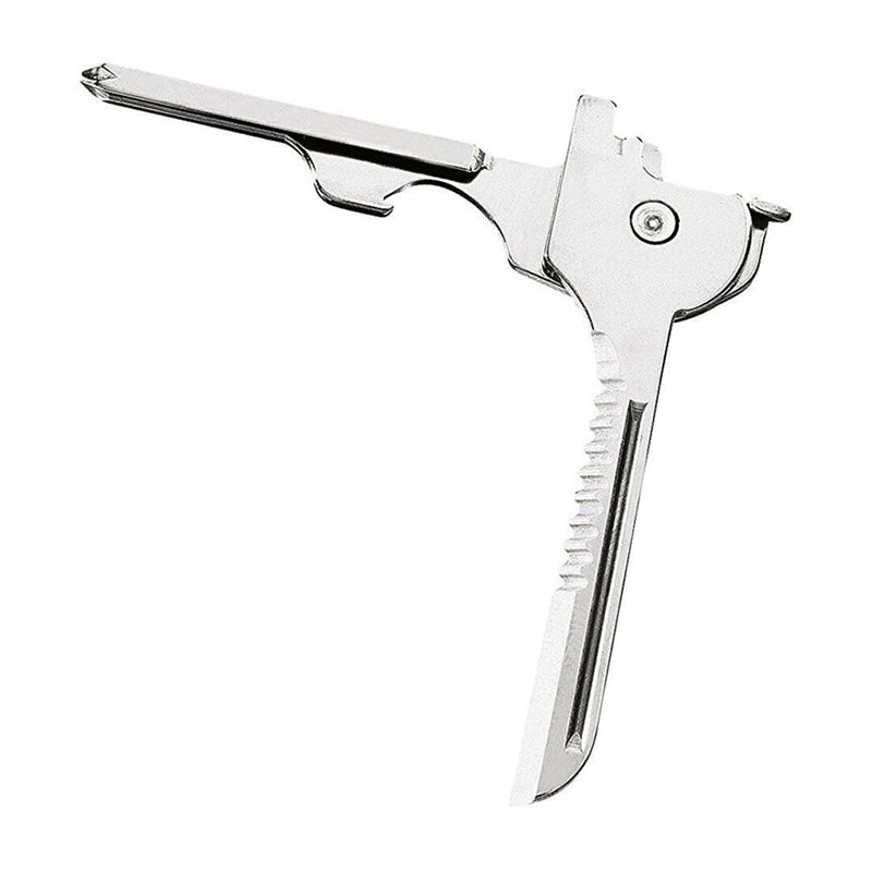 • Mångsidigt och praktiskt: Detta verktyg rymmer en platt och tvärskruvmejsel, flat skruvmejsel för glasögon, fickkniv, tandblad och flasköppnare.