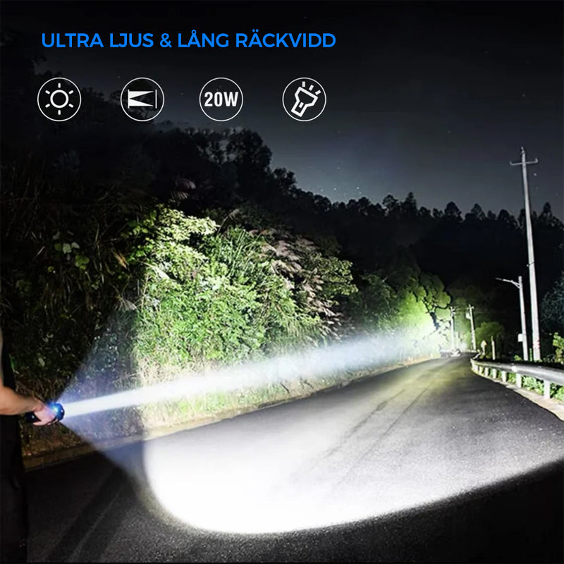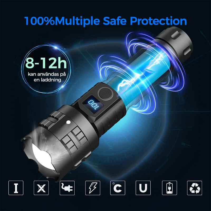 Med denna ficklampa känner du dig alltid trygg och förberedd. Oavsett om du är ute på en nattvandring eller står inför en nödsituation, ger dess stabila grepp och kraftfulla lampa dig den säkerhet du behöver.