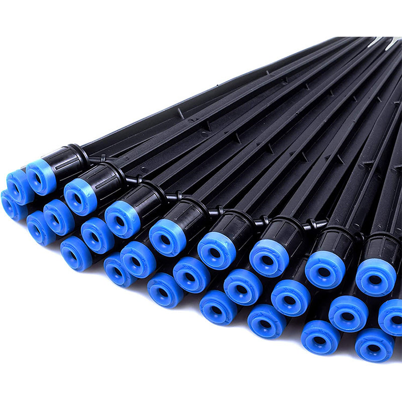 Justerbar trädgårdsbevattningsset i blå PVC, enkel installation med droppbevattning för exakt växthantering utomhus.
