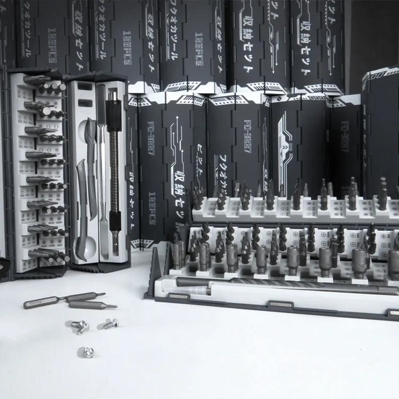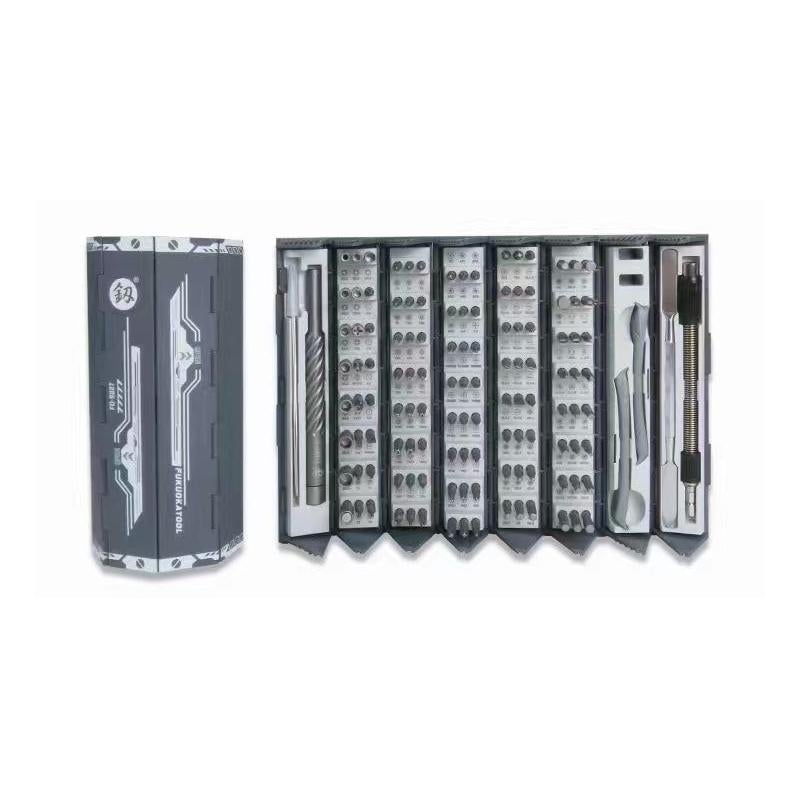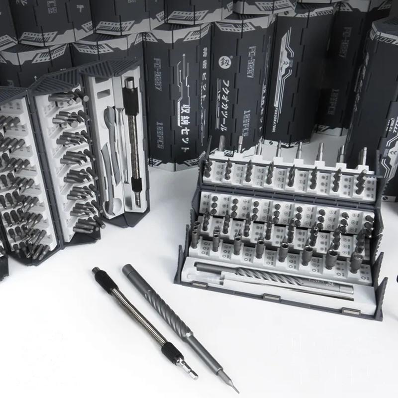 Njut av kraften och precisionen med vår exklusiva 128-dele precisionsskruvmejselsats, skapad för att möta alla dina reparationsbehov. Detta robusta och noggrant utformade verktygset erbjuder en oöverträffad mångsidighet, vilket gör det till ett perfekt val för både professionella och gör-det-själv-entusiaster.