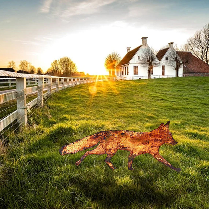 Fånga naturens charm med vår rustika metallräv. Denna eleganta dekoration i rostfärgad järn erbjuder en realistisk och tidlös design som smälter perfekt in i din trädgård eller bakgård.
