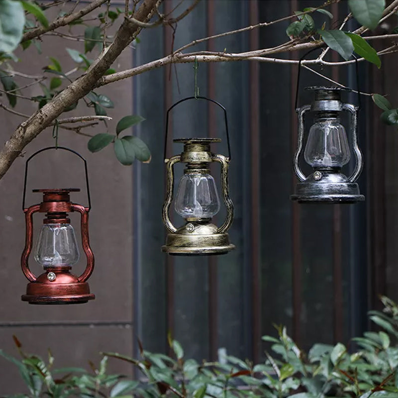 "Retro solcellsdriven fotogenlampa med LED, vattentät; antik finish i brons, guld, rost, silver; perfekt för utomhusbelysning