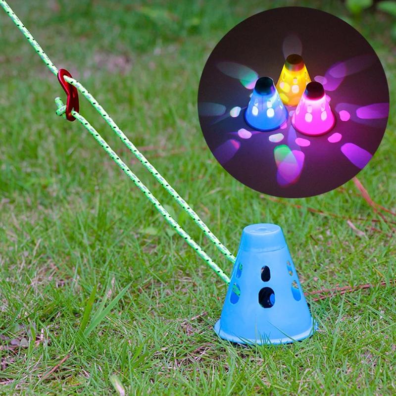 "Vattentäta LED-lampor för tältpinnar i färgskiftande design, kompakt form, optimal för nattbelysning, utomhusbruk."