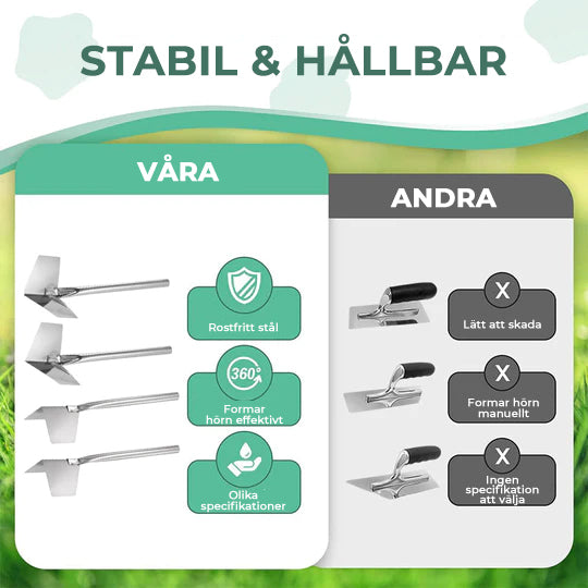 "Verktyg för byggnadsvinklar i rostfritt stål, visuellt sett robust och exakt, perfekt för gipsskivor och hållbar användning.