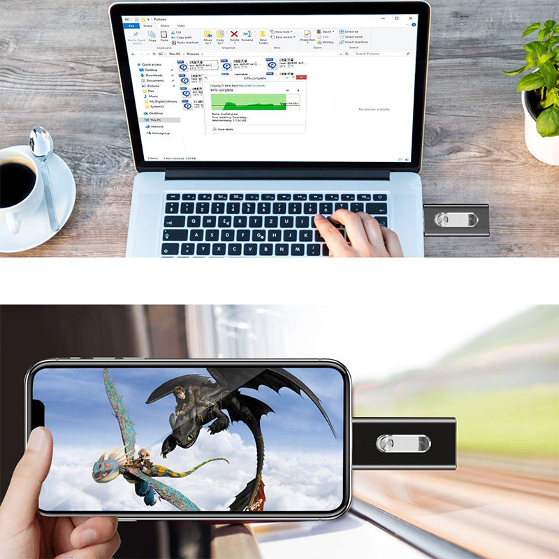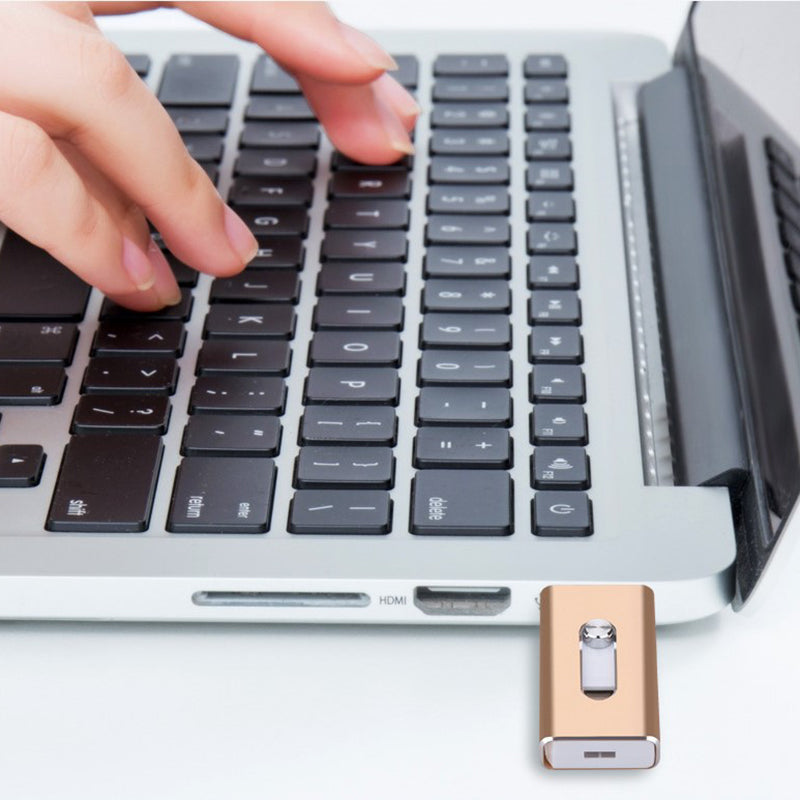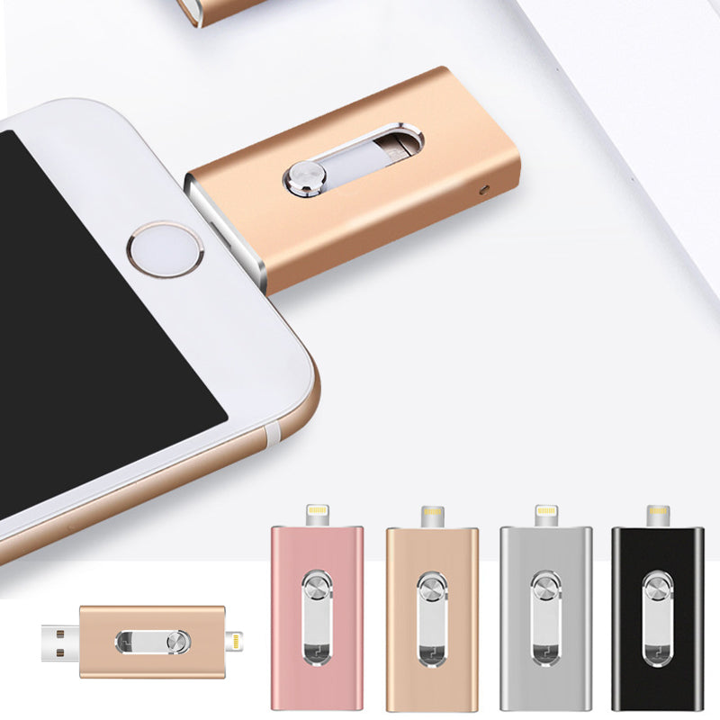 Letar du efter en flexibel och tillförlitlig flashlösning? Upptäck vår 3-i-1 flashenhet, speciellt designad för att vara kompatibel med iOS-enheter, Android-enheter och din dator. Med sin eleganta design i polerad aluminium ger den inte bara funktionalitet utan också stil.