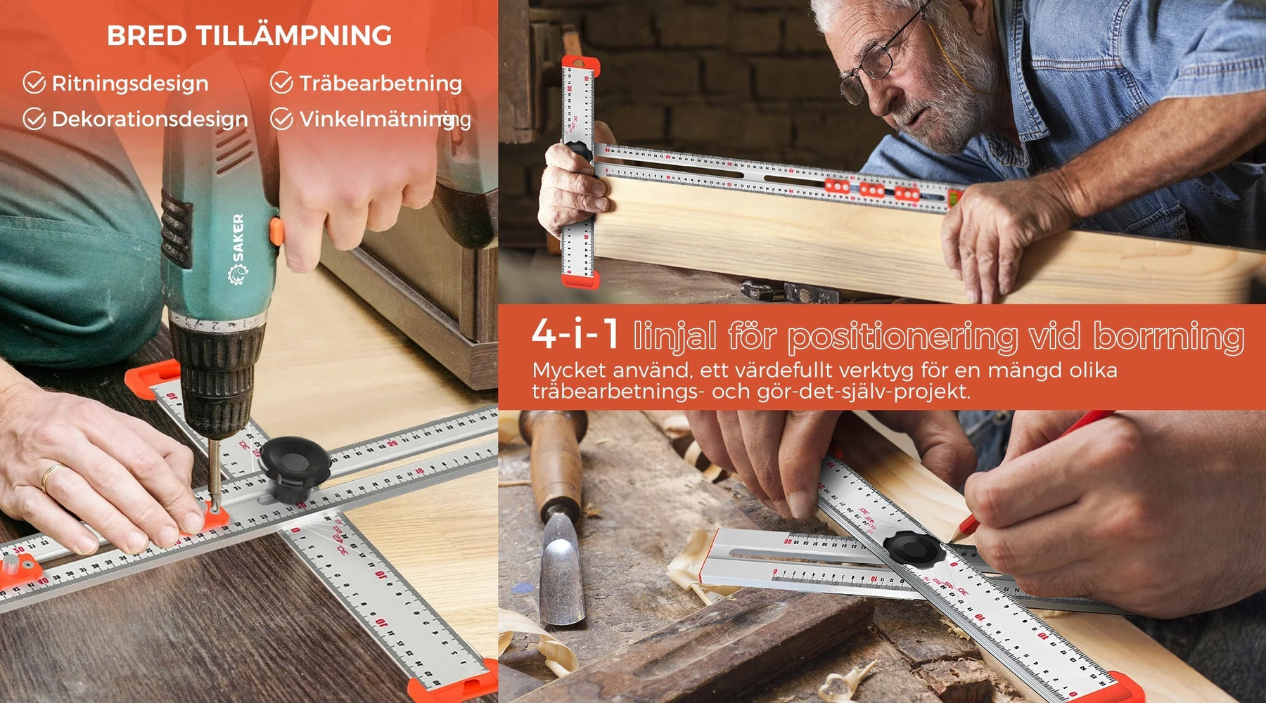 4 i 1 Linjal för Borrningspositionering - Hållbar och Justerbar