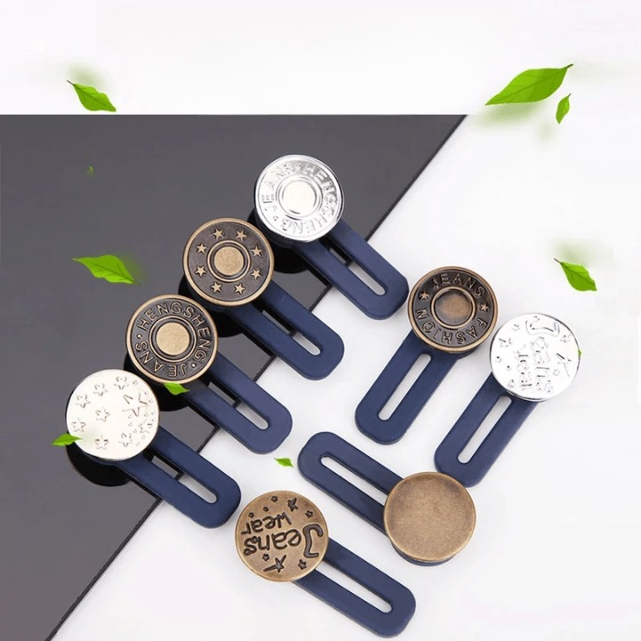 "Justerbar jeans flexiknapp för herr och dam, elegant metall, enkel fastsättning för byxmidja."